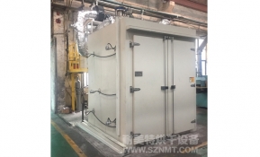 1、生产流程:a. 玻璃推车一件件从前门推进烘箱预热;b.取料员从后端出料口取料,整个推车取完料后,空的推车可以左右两侧门取走;c.如此反复周转。